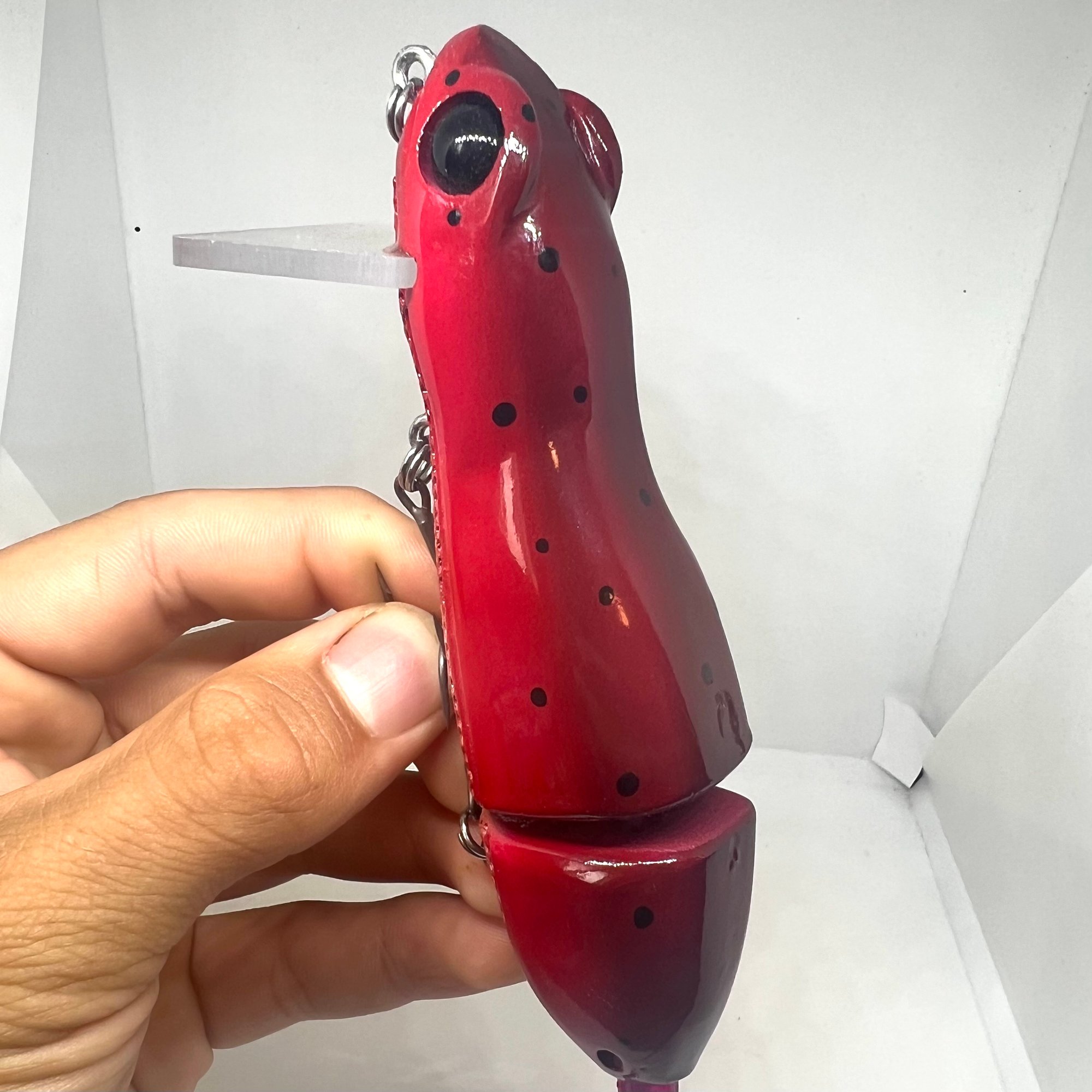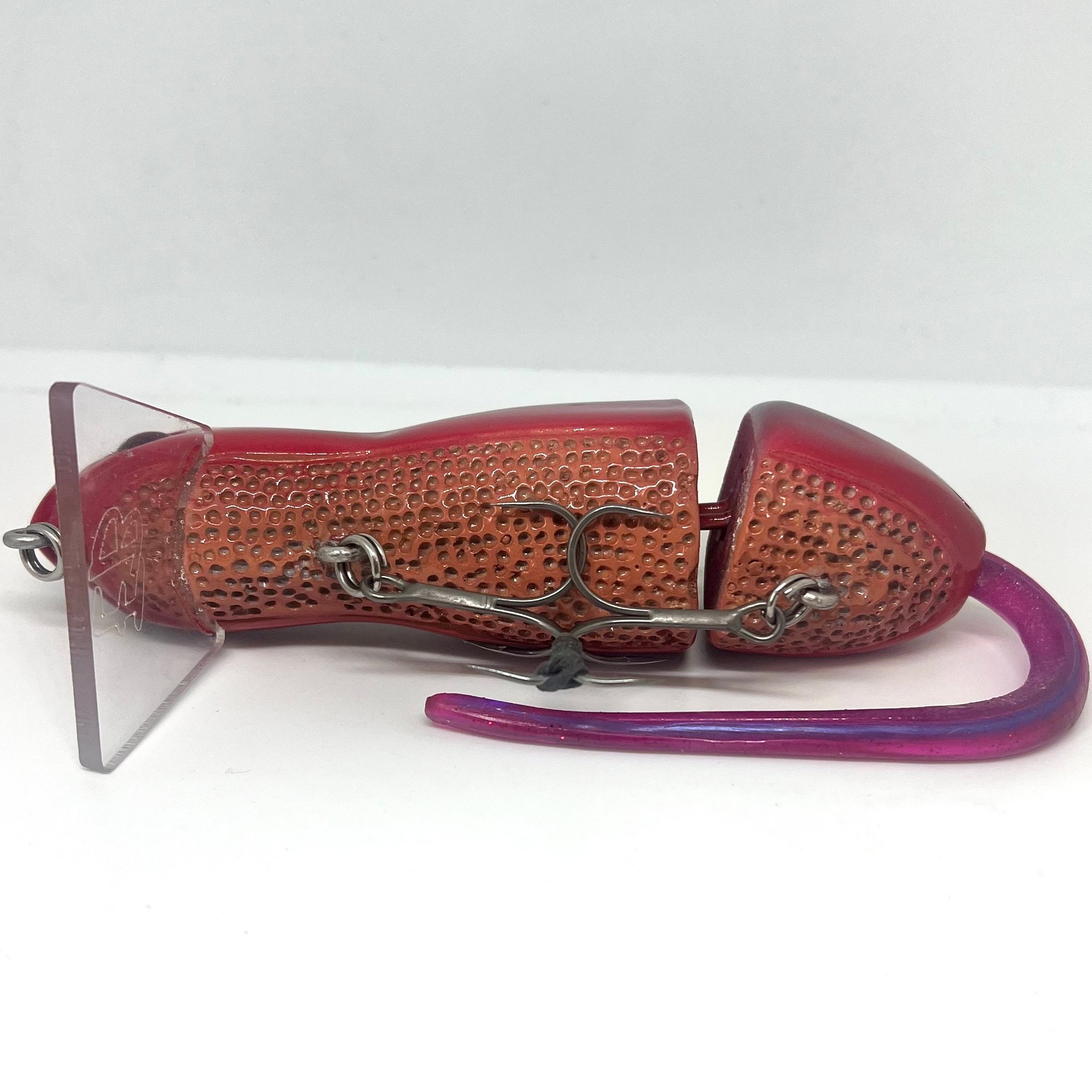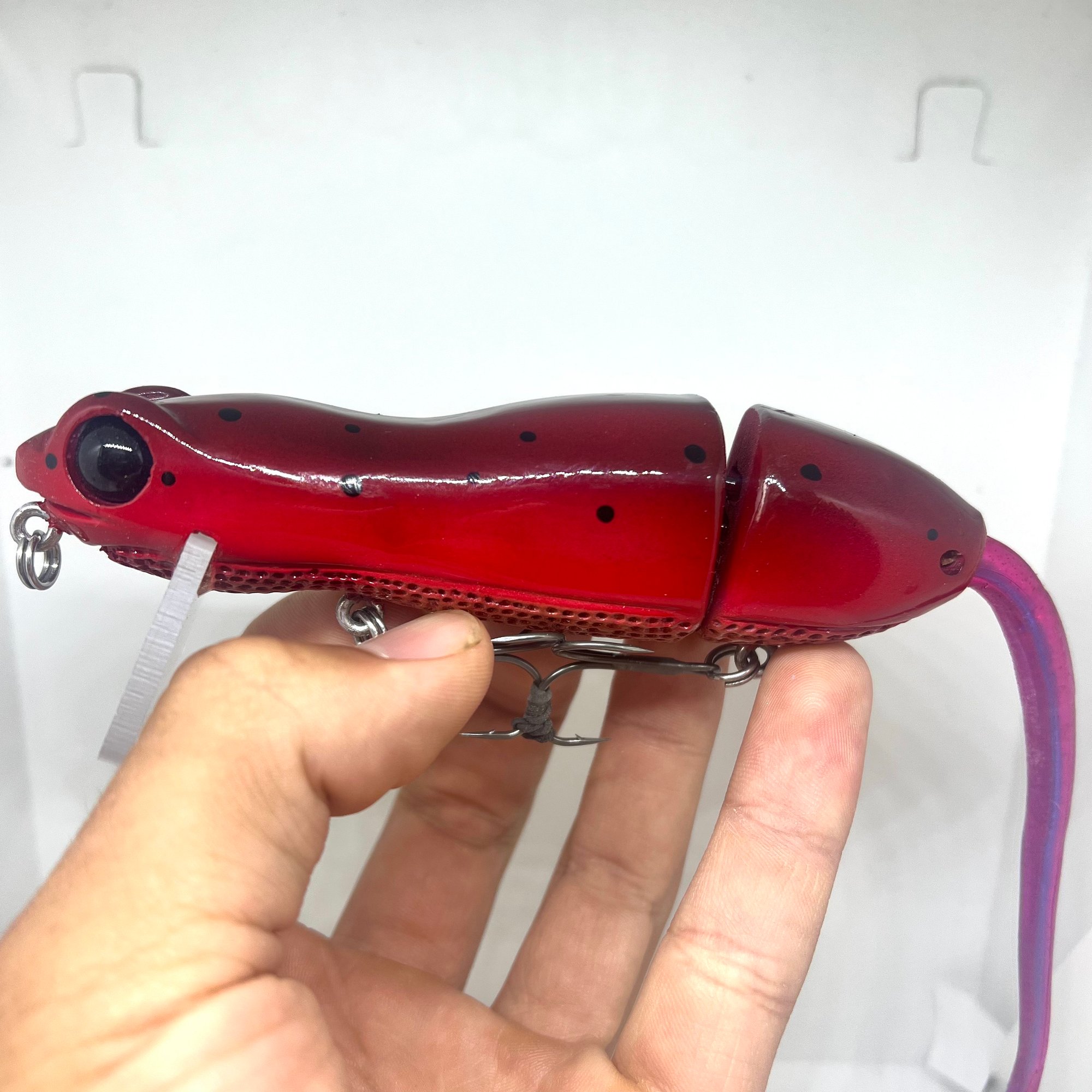 This handmade bait comes in at 2 ounces fully rigged, including a 5 inch body and 4 inch replaceable tail. We use top of the line components, including Swimbait Underground size 2 ST-36 hooks. You're ready to go, right outta the box. Wake it slow, shallow crank it, or dive it down a few feet. This is a wake/shallow crank. You can walk it on top, or even crank it down and then walk it. It's extremely versatile.