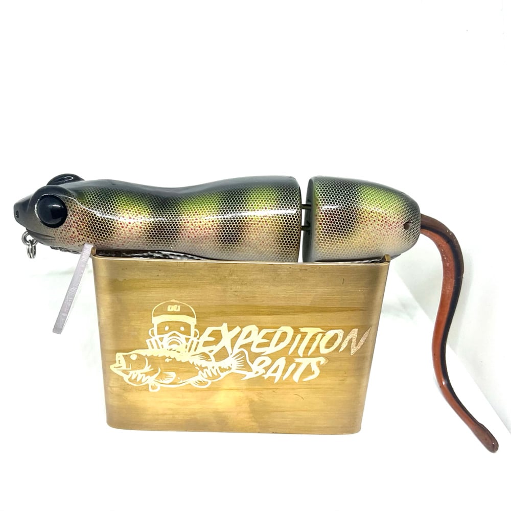 This handmade bait comes in at 4 ounces fully rigged, including a 6 inch body and 5.5 inch replaceable tail. We use top of the line components, including Swimbait Underground size 2 ST-36 hooks. You're ready to go, right outta the box. Wake it slow, shallow crank it, or dive it down a few feet. This is a wake/shallow crank. You can walk it on top, or even crank it down and then walk it. The larger size produces big bites and still brings in numbers!